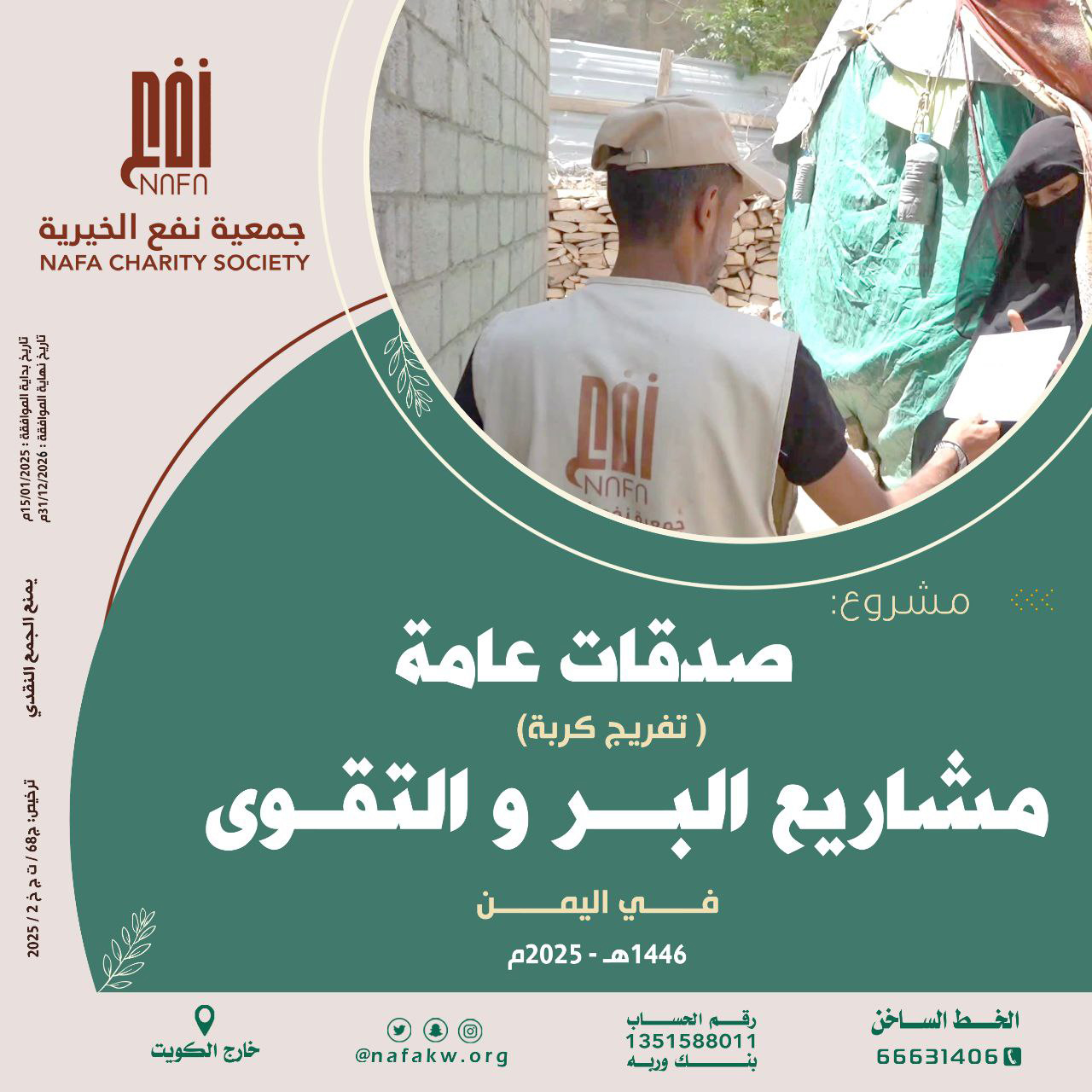 تعاني الأسر اليمنية من الفقر الشديد بسبب الأوضاع التي تعيشها اليوم. وفي هذا المشروع نقدم دعماً مالياً للأسر الفقيرة والمتعففة في اليمن يقول النبي –صلى الله عليه وسلم-: (من كان في حاجة أخيه كان الله في حاجته ، ومن فرّج عن مسلم كرب الدنيا فرّج الله عنه كربة من كرب يوم القيامة). قيمة السهم 50 دينار. هذا المشروع تجوز فيه الزكاة.هذا المشروع تجوز فيه الزكاة.